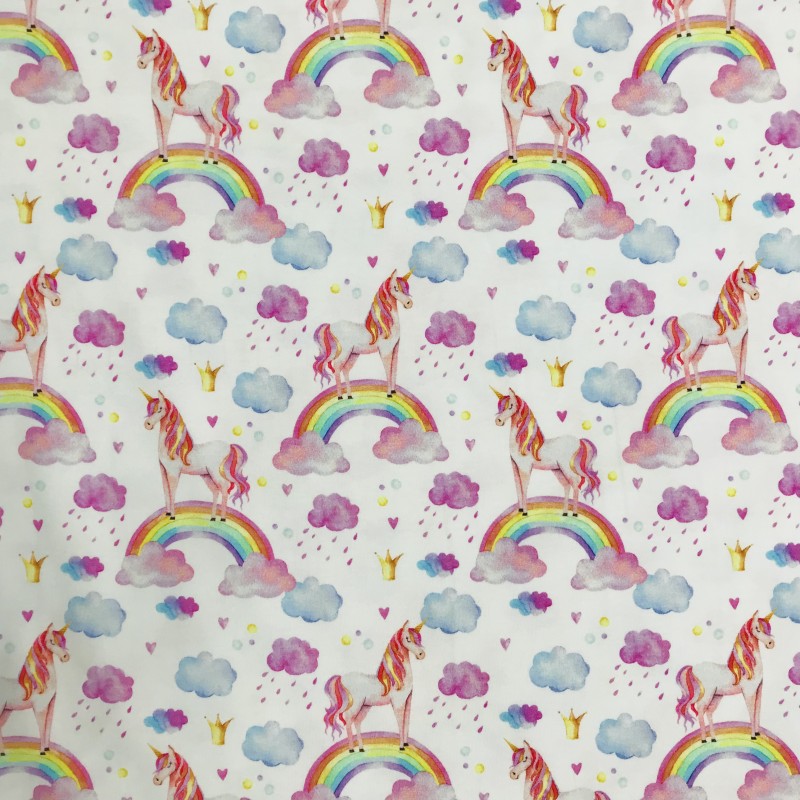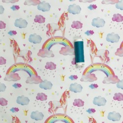Fin trikå med enhörningar på regnbågar.