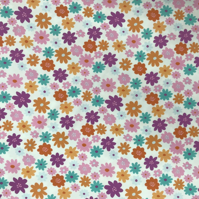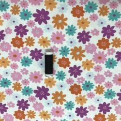 95% bomull 5% elastan. Bredd 150cm. Trådrullen på bilden är 55mm.