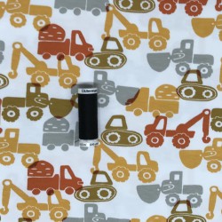 95% bomull 5% elastan. Bredd 150cm. Trådrullen på bilden är 55mm.