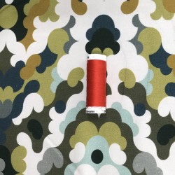 Joggingtyg med häftigt retromönster i grönt. Bredd 150 cm. 95% bomull 5% elastan. 240g/m2.
