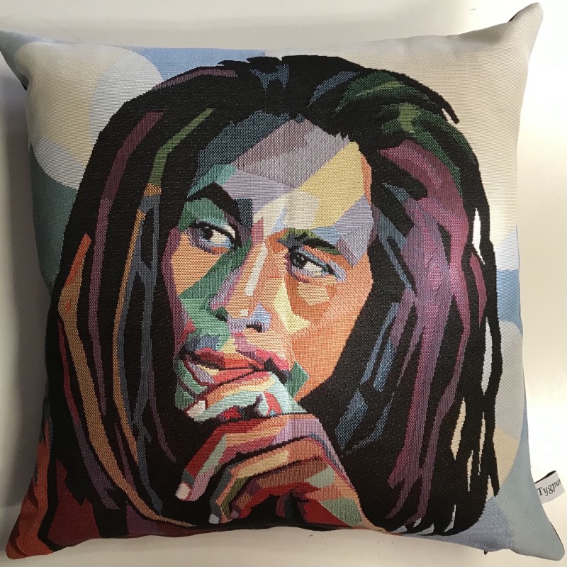 Kuddfodral ca 45x45 cm. Blixtlås i nederkanten. Mörkröd baksida.