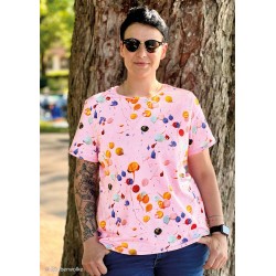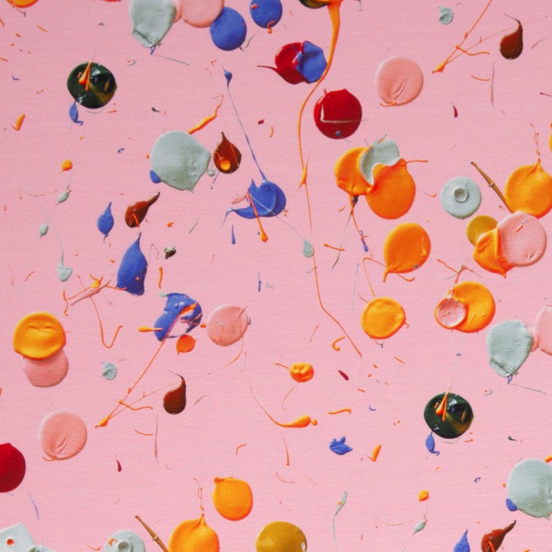 Trikå med färgglada stänk. 95%bomull 5% elastan. Bredd 160cm.