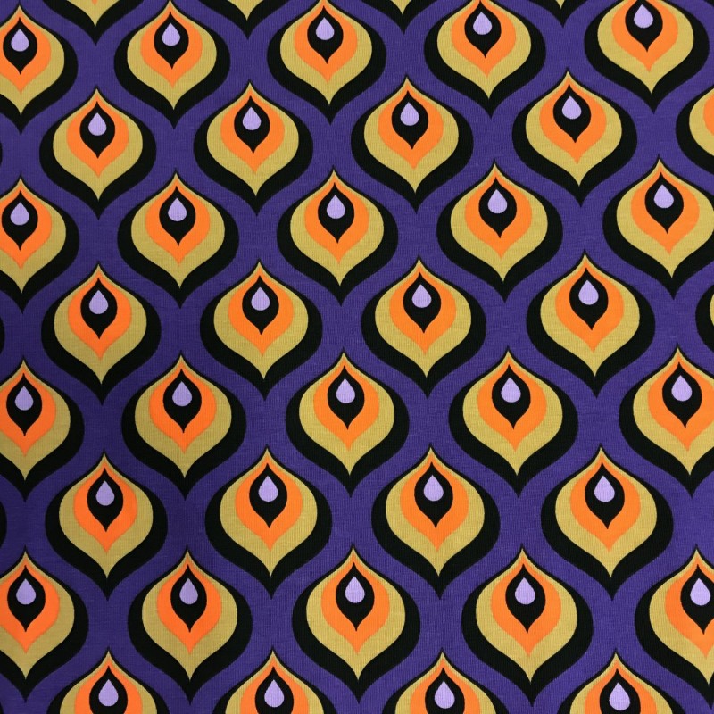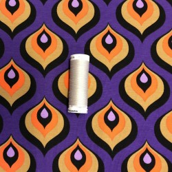 Retromönstrad trikå i 95% bomull 5% elastan. Bredd 150cm. 200g/m2. Trådrullen är 55mm.