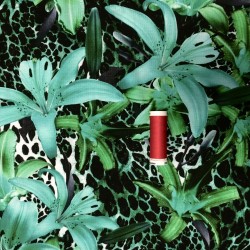 Blommor på leopardmönster. Läcker trikå i 95% viskos 5% elastan.