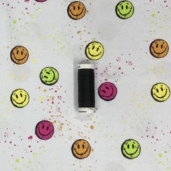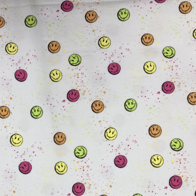 Svårt låta bli att le när man ser detta tyg. Härlig trikå med färgglada smileys.