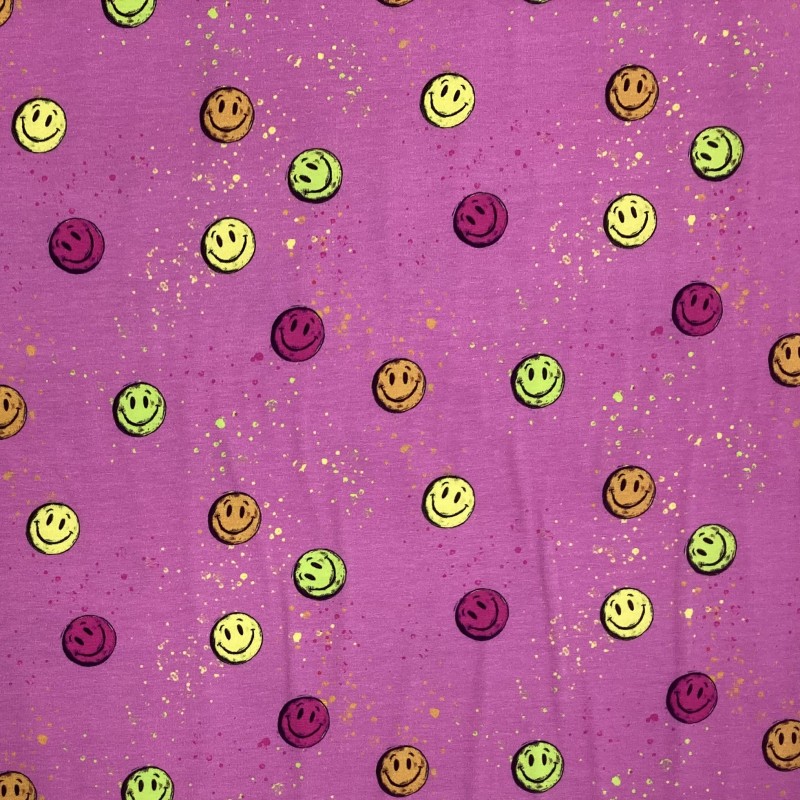Svårt låta bli att le när man ser detta tyg. Härlig trikå med färgglada smileys.